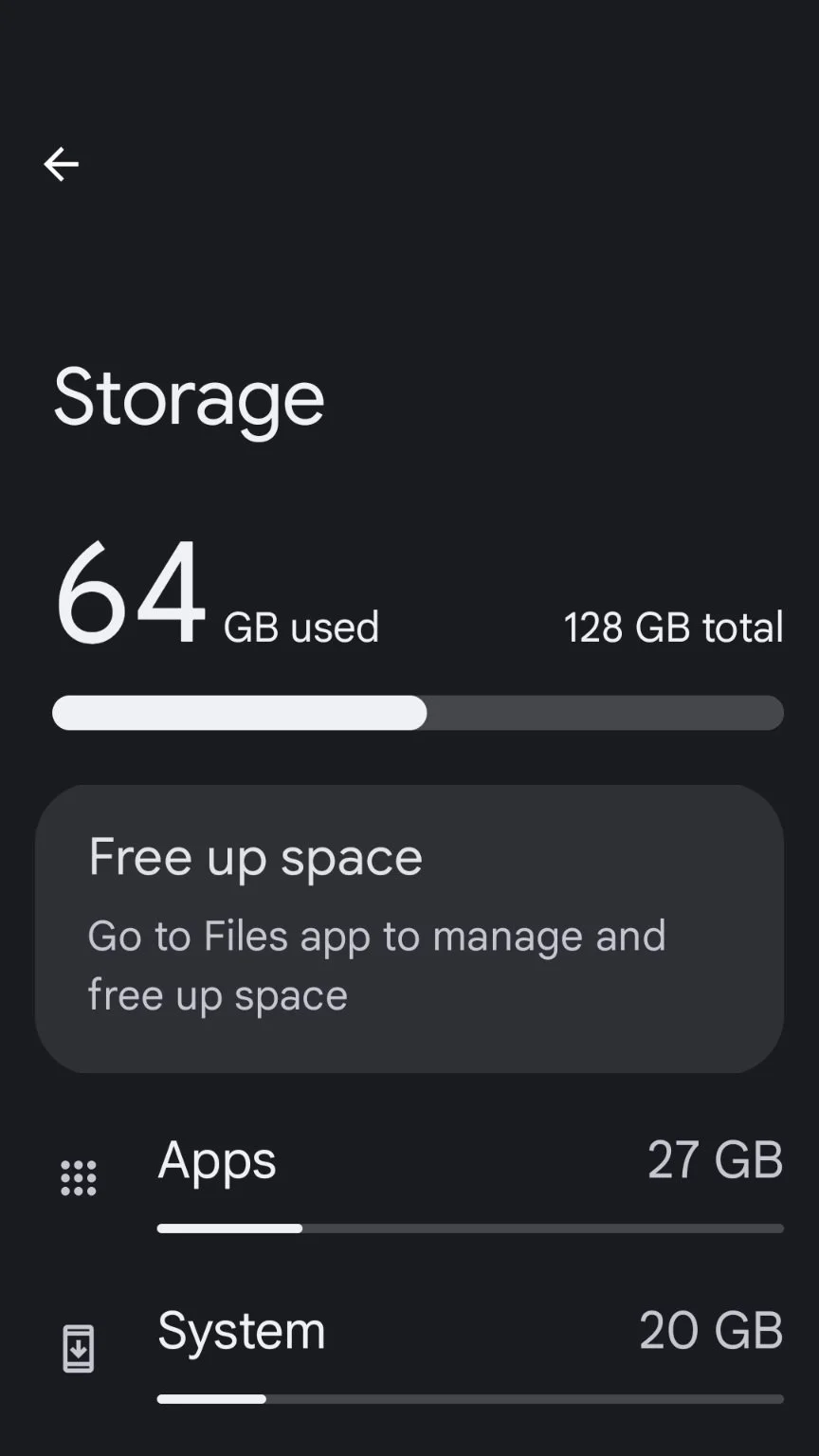 • Storage: Ensure there’s enough free space: