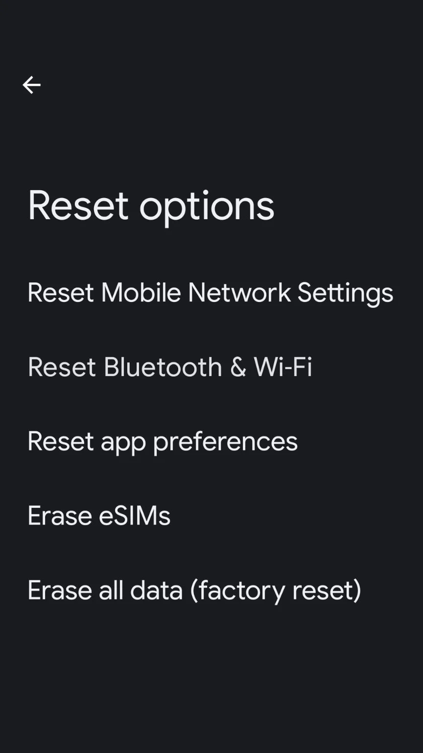 • Android: The steps can vary by device, but on standard Android, you'll find the reset option under System > Advanced in Settings.