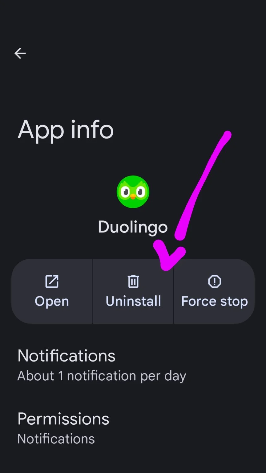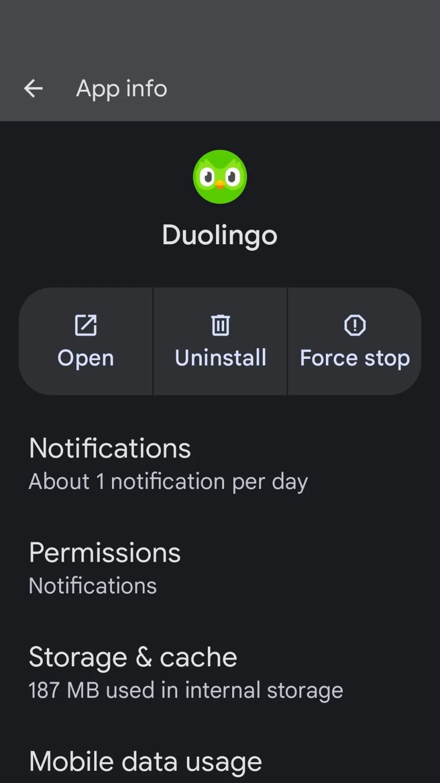 • To force stop or clear the cache, tap the app icon and select App info, then choose Clear Cache.