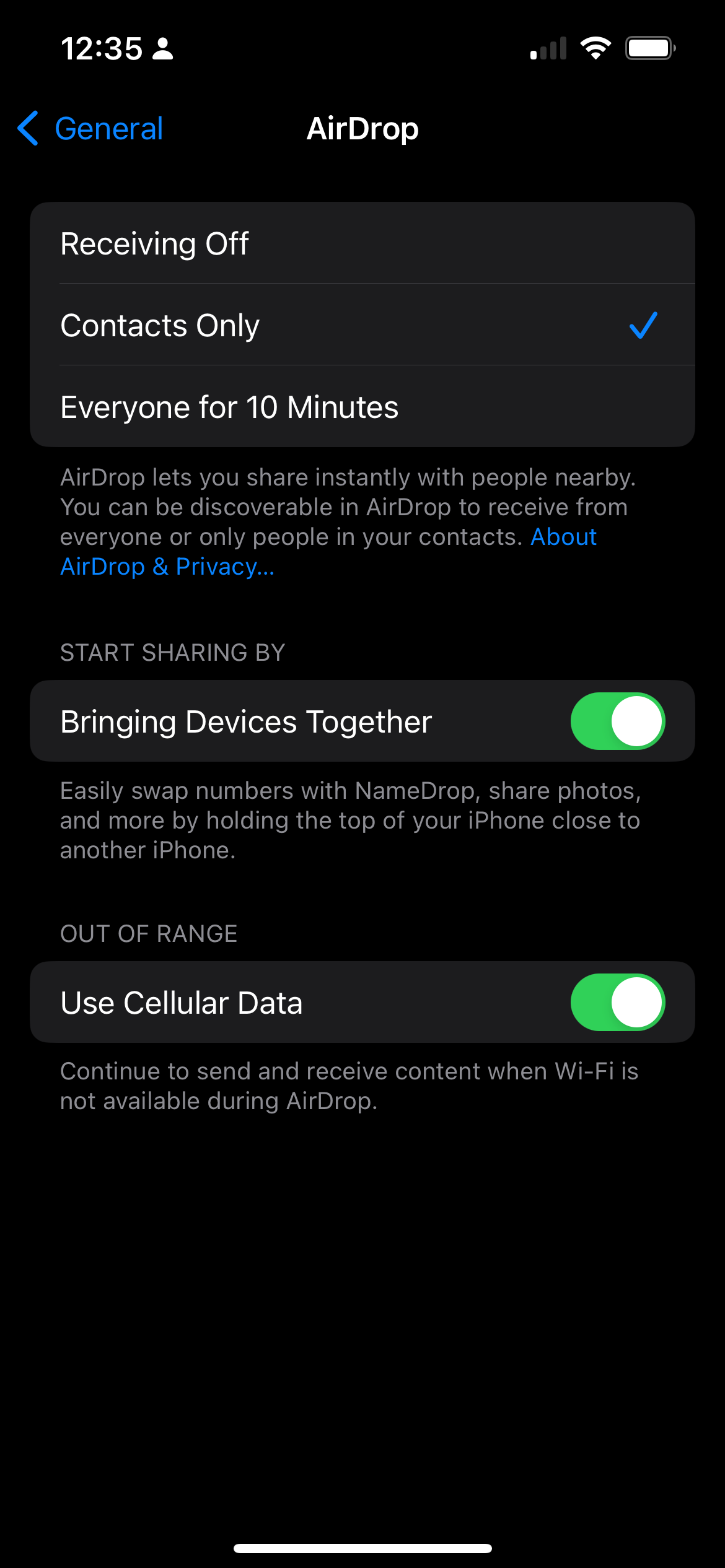 • Check if AirDrop is enabled and properly set up under Settings > General > AirDrop